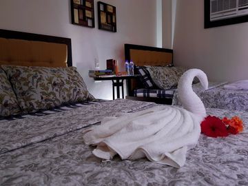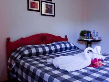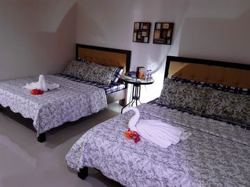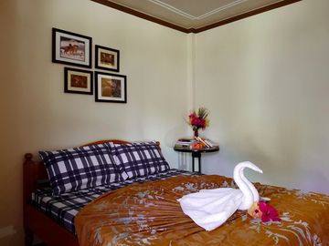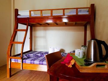 One queen bed with private bath (with shower heater)and Cabled Television. (Extra Mattress is Not Applicable)